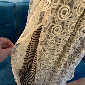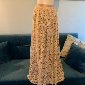 Fracomina lace maxi skirt 42 s small beige EUC striped lined slit