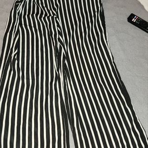 NWT! GIVE TO ME BY A FRIEND, BUT THEY DO NOT FIT. VERY CUTE BLACK AND WHIT STRIPED PANTS WITH STRAPS! SIZE:LARGE