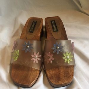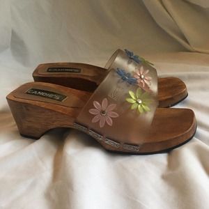 Candies Jelly Clog Clear Wooden Slide Sandal VTG Floral Chunky Womens Size 6.