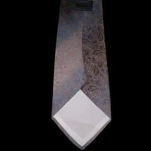 This vintage Prince Consort Golden Clasp Men’s Tie has a paisley fade print that is a must-have! The ombre colors are blues, browns, and lavender/grays. 60” length; 3.25” New Standard width. The tie itself is in Excellent preowned Condition, but there is a slight stain on the inside lining at the tip that with care should be easily removed.