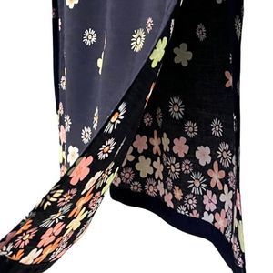 🌟VINTAGE🌟 Christopher&Banks maxi skirt. This super fab and fun skirt features 60's inspired flowers in shade of pinks, yellows, oranges, greens, and white 🌸🌼🌸 on a background of rich navy blue, long slits on both sides, an interior button closure, exterior zipper and adorable purple flower button, and is super lightweight! 🥰