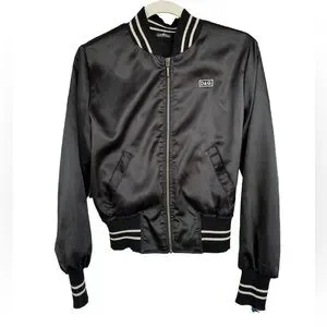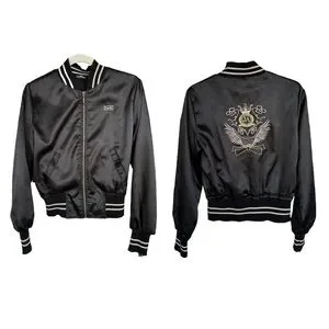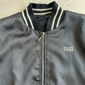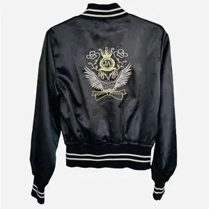 Dolce & Gabbana Vtg. Y2K black satin Bomber jacket embroidery Logo S