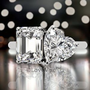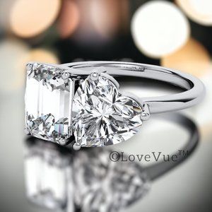 Certified 2ct. t.w. Diamond Emerald&Heart Brilliant Cut Engagement Wedding Ring