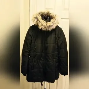 Torrid Nylon Fur Trim Fit And Flare Puffer Jacket Black Size 00