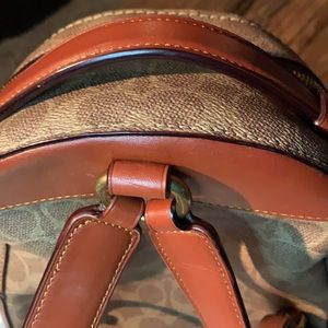Beautiful backpack by Coach with brown leather straps and pocket detailing and gold tone hardware. Dust bag included