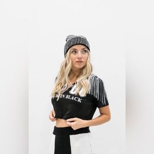 AC/DC crop tee with FREAKING SILVER FRINGE SLEEVES....OMG!