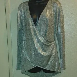 super cute Criss-Cross v-neck metallic blouse💃💃💃nwot