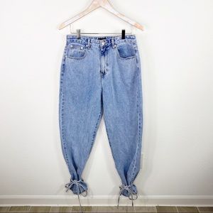 Reposhing this item I purchased from @chandlerleel. Loved it, but ready to rotate for something new. amazing jeans. size L/30. excellent condition. lost weight so they don't fit anymore. tie around the ankle detail very cute. multiple ways to style