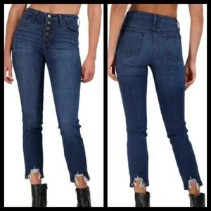 summer spring raw hem chewed hem high rise high waist button fly cropped skinny