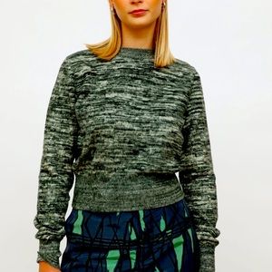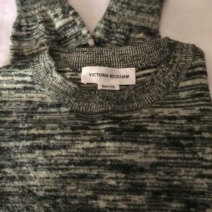 VICTORIA BECKHAM cropped Marled brushed cotton sweater in dark green. Ribbed neckline and hem . 100% cotton. Made in Italy. New condition. No rips tears stains pilling or distress.