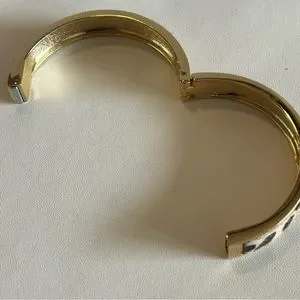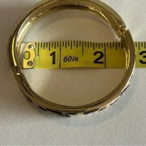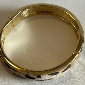 80’s VINTAGE Leopard Print & Gold Metal Cow Hide Bangle Clamper Bracelet.