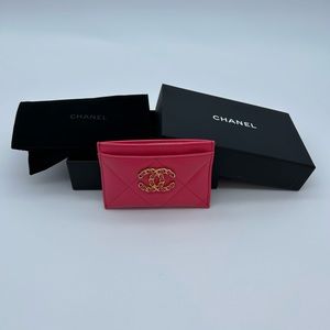 (SOLD) Chanel Lambskin Quilted Chanel 19 Card Holder Rose