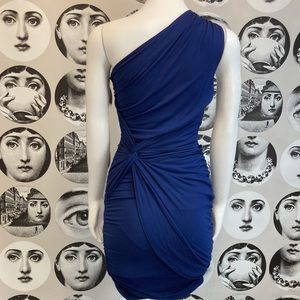 Tart Navy One Shoulder Ruched Bodycon Dress Sz M, excellent condition!