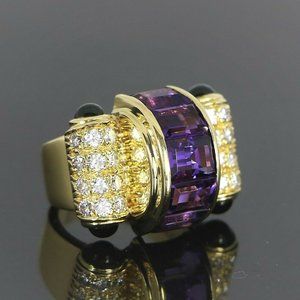 13248 Lagos Caviar 18K Yellow Gold Purple Amethyst Diamond Tourmaline Ring