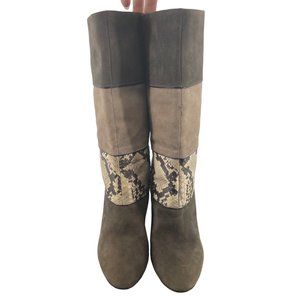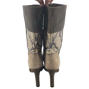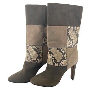 Jean-Michel Cazabat Designer Rosalba Brown & Tan Size 38 (7.5/8) Leather & Snakeskin 4" Heel Boot