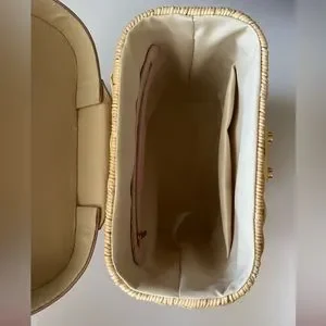 Brand new Tommy Bahama wicker bag lined with sateen material. Beautiful hardware and good stiff outer material. This bag has never been used!