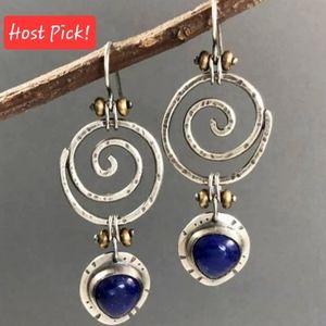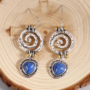 🏷SOLD. Boho dangle earrings Blue hollow stone Antique tribal. NWT 🏆HOST PICK🏆