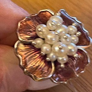 Paola Valentini PV 925 Sterling Silver Pearl Flower Ring