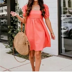 Wild Fable Peach Babydoll Puff Sleeve Dress Smocked Back Cottagecore Summer