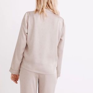 Soft and silky jacquard pajama top by Madewell. Chic and polished button up styling that can definitely be worn out and about. Beautiful ashy silver-tone light gray satin. Single breast pocket and flattering cuff and collar details. Functional buttons and standard (non-cropped length). Polyester. Imported. Machine washable. MSRP: $79.50 + tax.