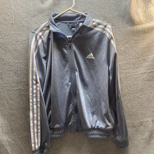 ADIDAS Women Blue White Striped Full Zip JACKET Pockets Stretch Waist Wrist Sz L. Stain on one of the pockets see pictures for details. EUC. Buy it now. Thanks in advance.