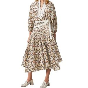 NWT Tory Burch Pleated Tie Waist Floral Print Skirt