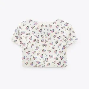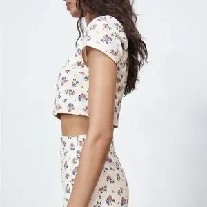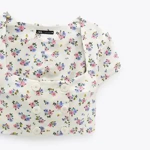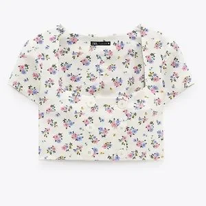 Sooo cute! Cap sleeves crop top with front double role buttons.