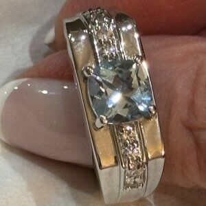 Center Stone Princess Cut Blue Topaz with CZs on both sides