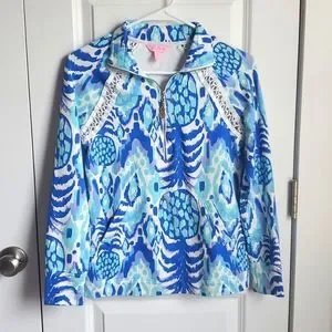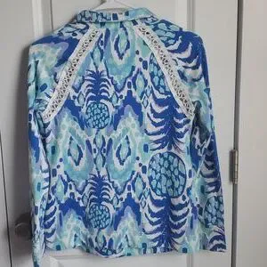 Lilly Pulitzer Skipper Popover Serene Blue Tropi Call Me Pineapple Print Top XXS