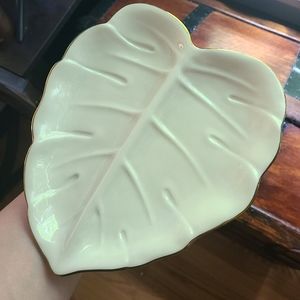 Tabitha Brown for Target ivory stoneware tropical monstera leaf shaped plate / tray with gold edge / lip detail and leaf texture (NOT flat.)