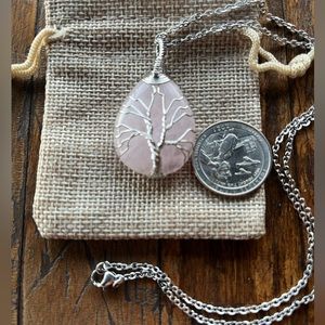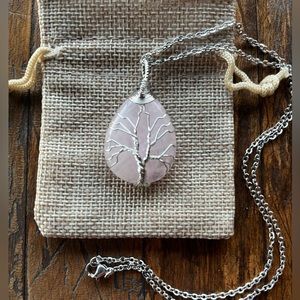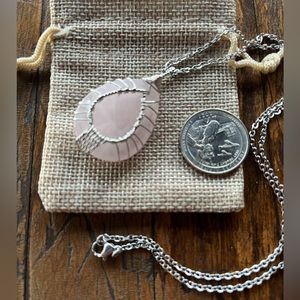 Brand New Wire-Wrapped Rose Quartz Drop Pendant with Stainless steel Chain