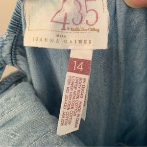 Girls Matilda Jane Camp Johanna Gaines Barn Dance Tonight Dress Size 14. Excellent condition. Beautiful dress for spring and summer. Features a classic chambray meets eyelet cotton and lace trim for a perfectly feminine dress that will impress with some open back detail and ruffle shoulder straps. Elastic waist with tie in back.