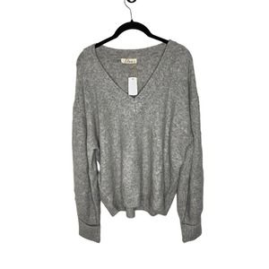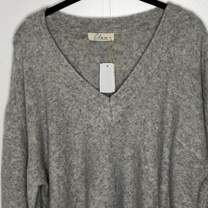 NWT Elan Womens V Neck Sweater Size Large Gray Lightweight Soft & Cozy
