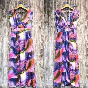 Dirty Ballerina Blue Multi Watercolor Print Drape Back Maxi Dress