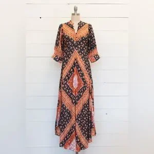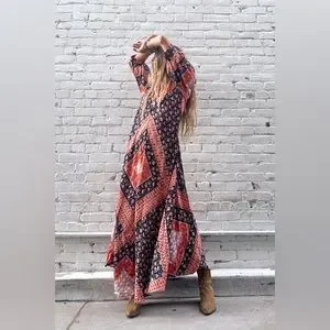 It’s no wonder this dress is sold out. It’s beautiful gypsy print and perfect fit. Color is called Rust. Size Medium