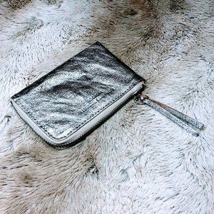 New Katherine Hamnett Silver Leather Zipped Pouch