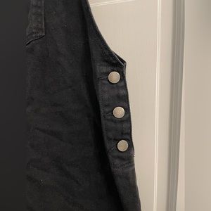 Excellent used condition, no flaws. 3 side buttons on each side for putting on, off. Adjustable straps make it easy to adjust this dress to all heights! 2 back pockets and 1 front pocket perfect for stashing your phone in. Measurements laying flat: pit to pit 17”, bottom width 20.5”, and top of chest to hem 24.5”