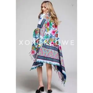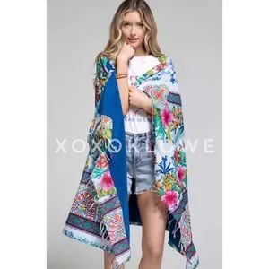 Your beach day just got a boho chic makeover with this vibrant floral & bold ethnic print blanket towel. The print side is a lightweight blanket to lounge on. The solid blue is a French Terry towel to dry off with. Grab one of our eco friendly suits, a kimono, bag & a hat. You’ll be ready to soak up the sun in sassy boheme style.