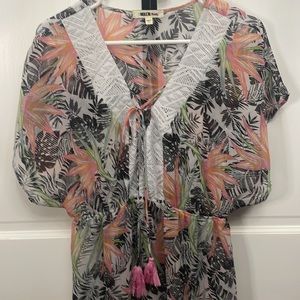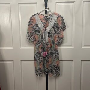 Miken Swim Tropical Floral Printed Lace-Up Dress Cover-Up beautiful in good condition, perfect for the summer