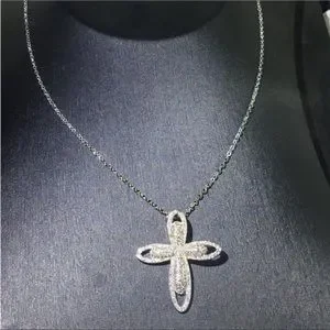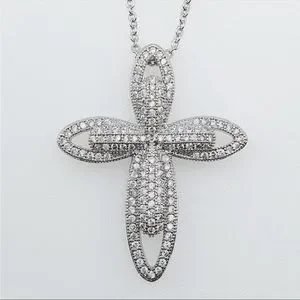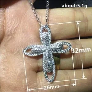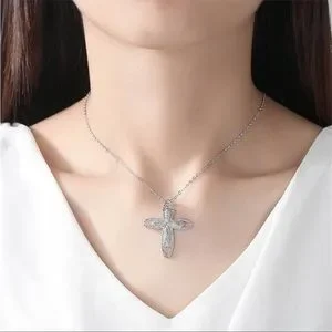New 925 Silver Plated CZ Cross Necklace