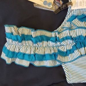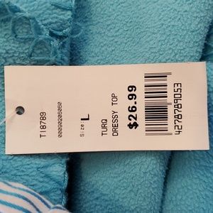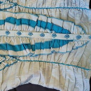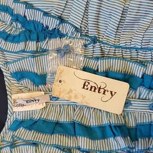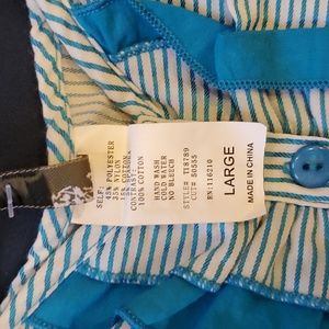Vintage Entry Corset Style Vest Dressy Top Size Large. Blue/White Striped. Very Flattering to your figure. Lots of details in design. Blue button up front. Never worn. New with tags and 2 extra buttons. Self: 45% Polyester, 35% Nylon, 15% Cotton, 5% Spandex. Contrast: 100 % Cotton. Hand wash, Cold water, No bleach.