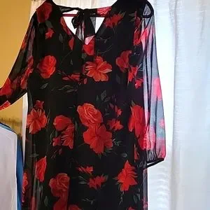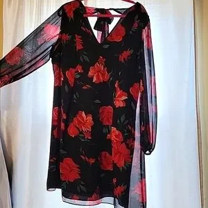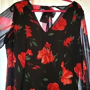 Sheer sleeves, with bow tie neck detail on back, sheer layer over black layer.