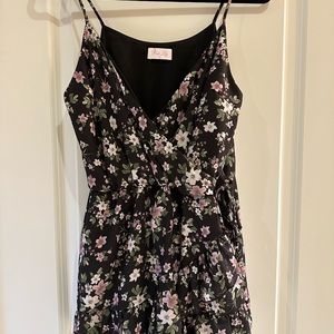 NWOT Pink Lily, Small, Wrap Floral Black Romper