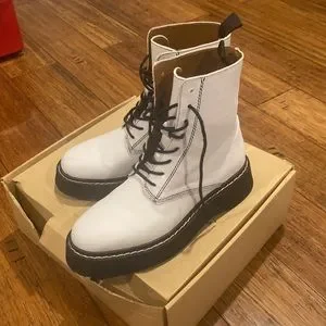 Zara white chunky lace up boots