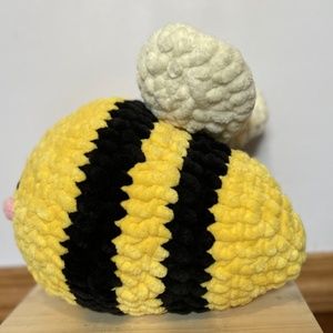 This is a cute homemade crochet bumblebee with soft velvety fabric