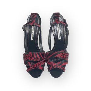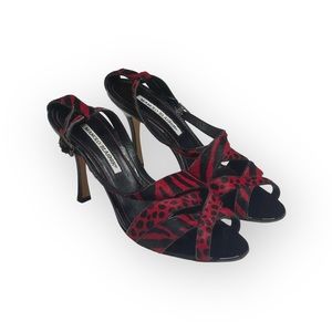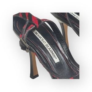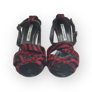 Manolo Blahnik ♕ Animal Printed Calf Hair Slingback Stiletto Sandals ♕ Black Red