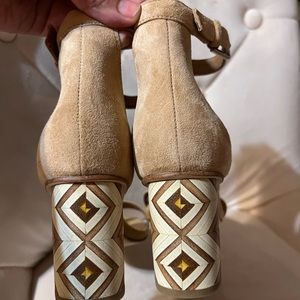 Wooden heel with geometric design
