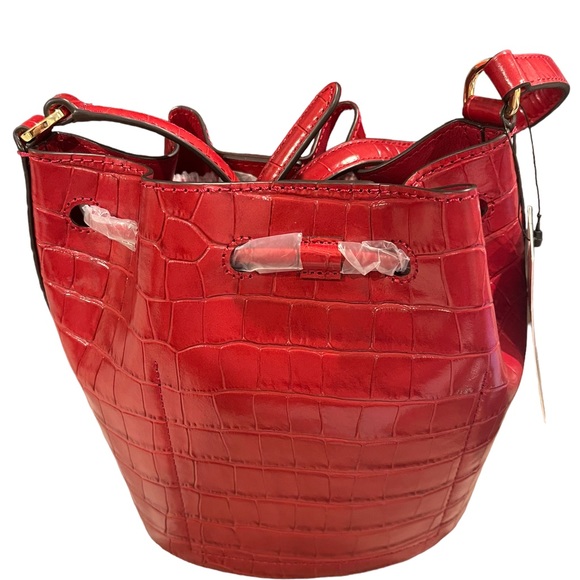 Lauren Ralph Lauren Women's Andie Embossed Leather Drawstring Bag, Red, One Size
