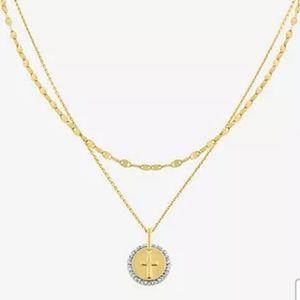 2pc Diamond Necklace 14k gold over silver chain 18 inches