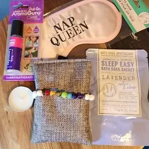Sleeping Beauty Nap Queen Eye mask, Chakra Bracelet Lavender Bath Salt NWOT